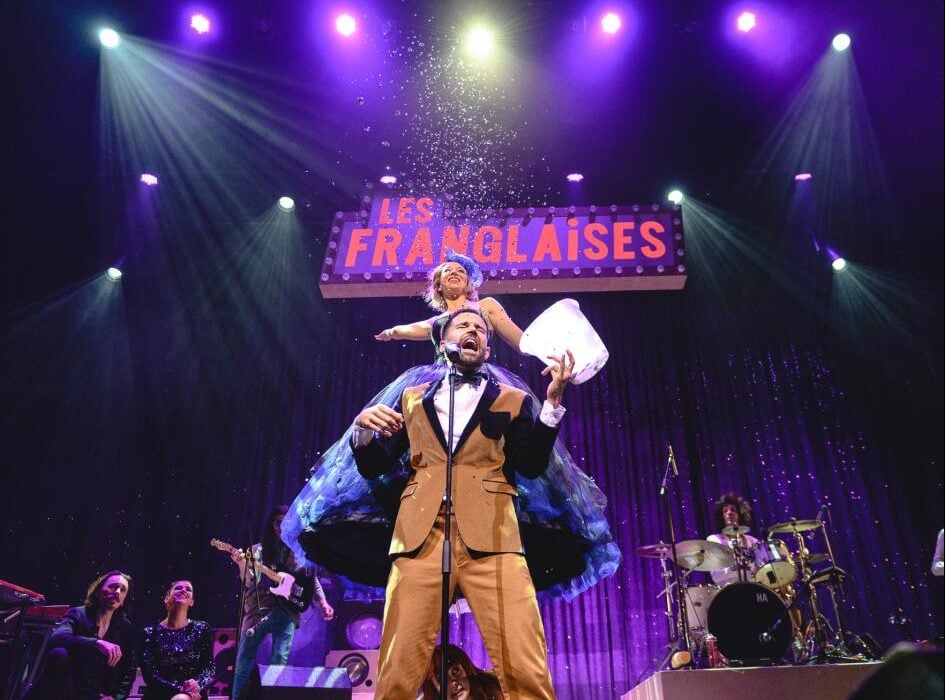 Les Franglaises, c’ est 12 comédiens-chanteurs-musiciens survoltés aux manettes d’un show à 100 à l’heure. Le spectacle commence par un blind-test (test aveugle) interactif, mais la troupe et son Maître de cérémonie vont rapidement se prendre les pieds dans leur propre concept, faisant totalement dérailler la soirée. Un spectacle débridé et inclassable, puisant ses inspirations dans l’ absurde anglais et la comédie musicale américaine… pour en faire le spectacle le plus Frenchy de la francophonie.